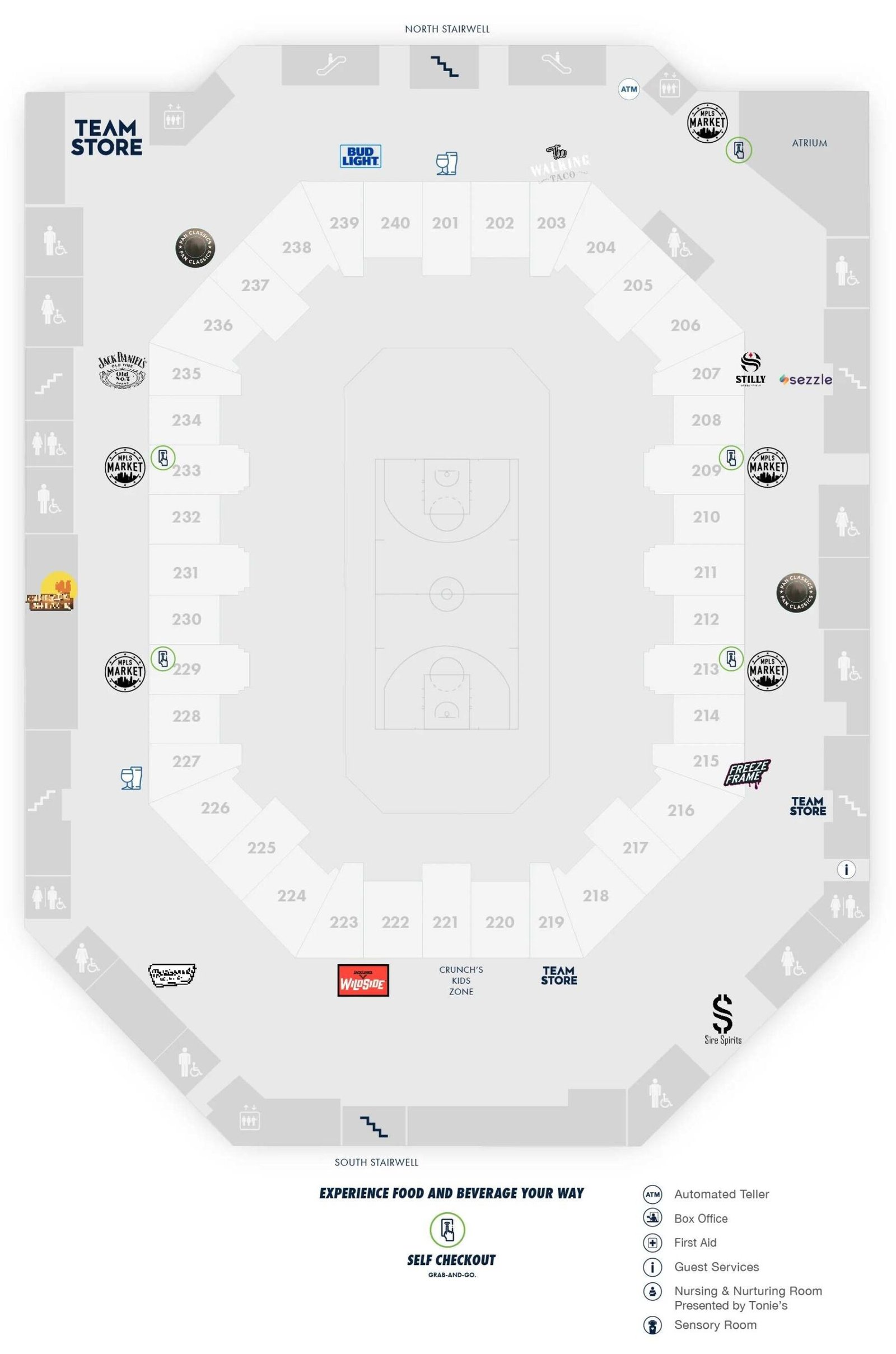 The Target Center seating capacity is 18798 for basketball, 17500 for hockey, and upto 20500 for concerts. This arena is used for various purposes; therefore Target Center seating plan and seating capacity are different as per the game and event. During the online ticket booking of Target Center seating plan shows the 3D seat view and seat price. Where visitors can choose the seat according to view and budget, the Target Center seating chart is divided into various levels, and all amenities details are depicted on the map. Visitors can check the amenities like stairs, accessible seating, lodge boxes, restrooms, press area, ATM locations, ticket office, First Aid facilities, sensory room, nursing room, etc., which are depicted location-wise at the Target Center seating layout.